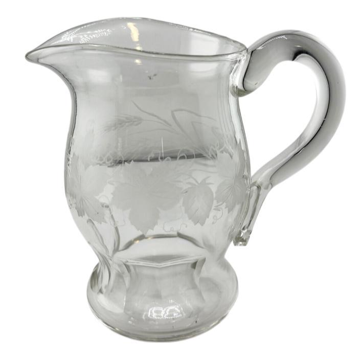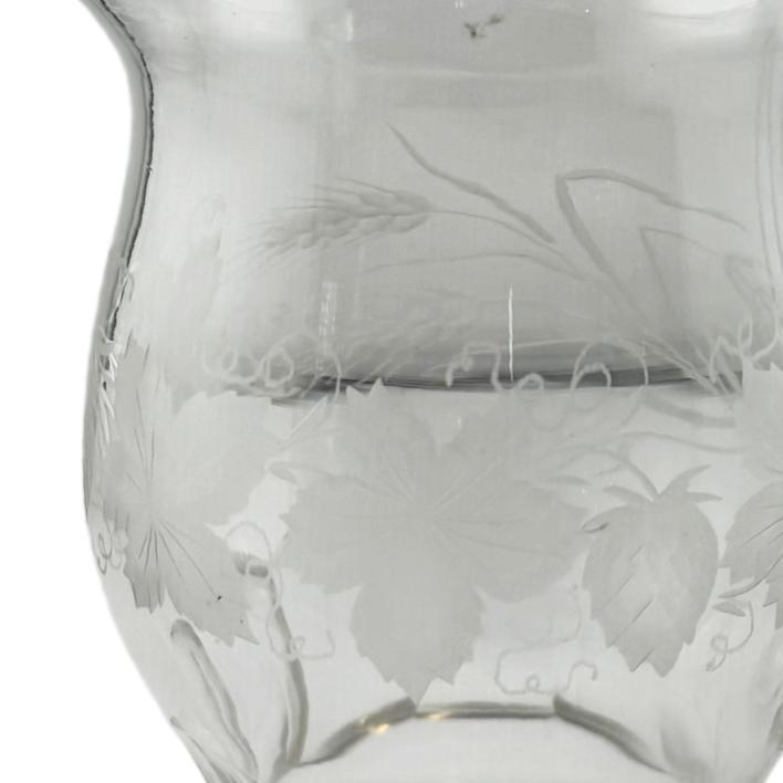 A 19th century hand blown water jug etched with grape vines, circa 1890