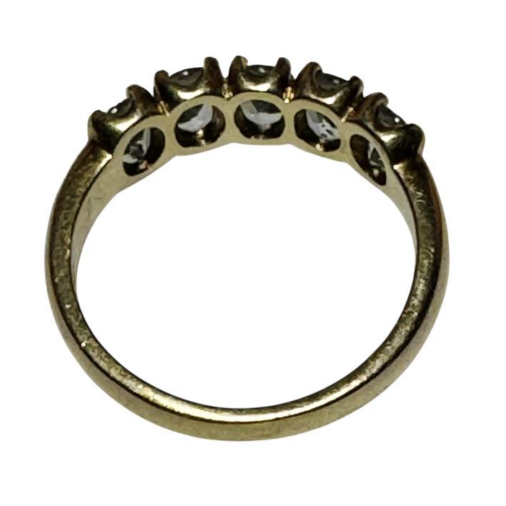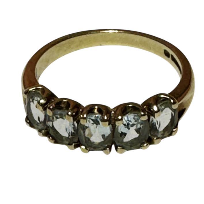 A 9ct yellow gold ring set with five oval cut blue topaz