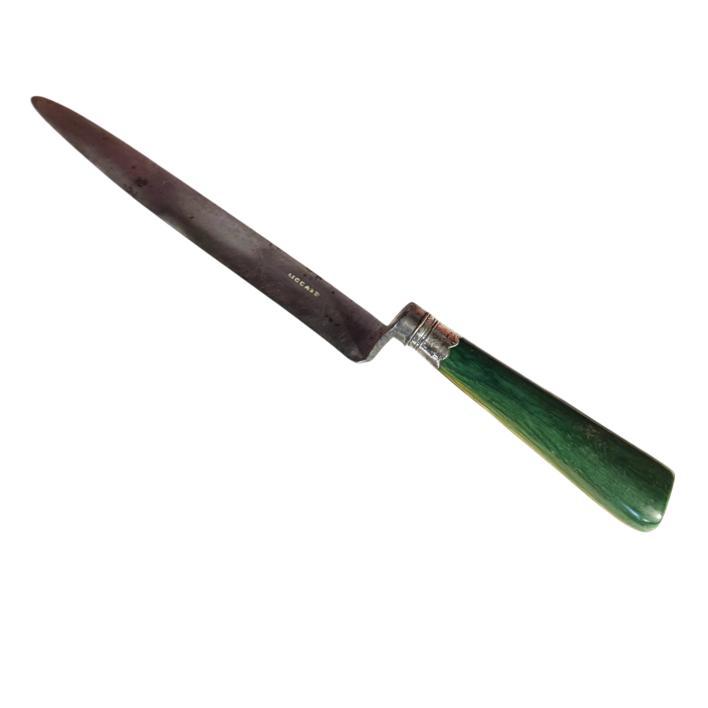An 18th century steel serving knife by Richards of Sheffield with silver mount and green stained bone handle, circa 1790.