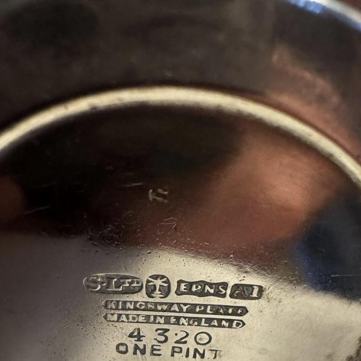 A 1920s 1 pint silver plate cocktail shaker with handle