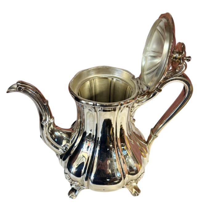A James Dixon gourd form silver plate coffee pot on Rococo feet, circa 1870