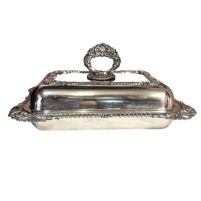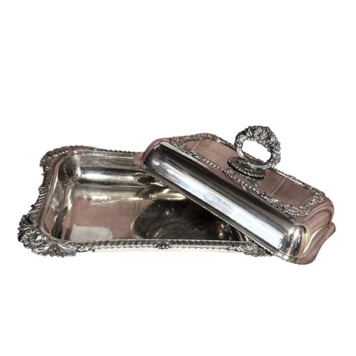 A pair of Georgian Old Sheffield Plate covered vegetable dishes with ornate cast borders, circa 1800