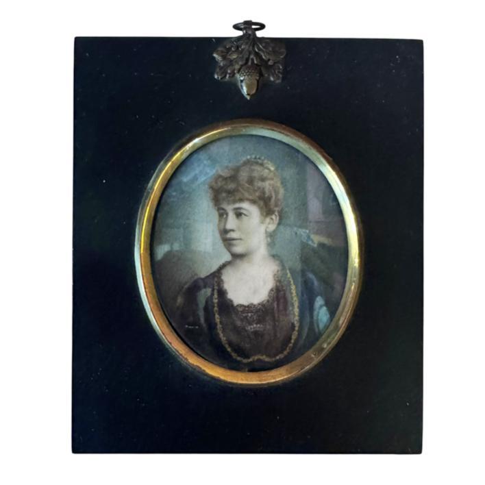 An ebony framed portrait miniature of a lady dated 1888