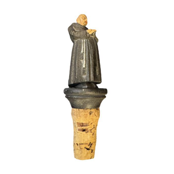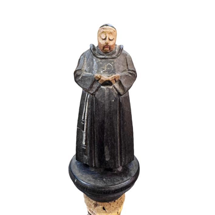 An early 20th century carved Black Forest bottle stopper of a praying monk, circa 1910.