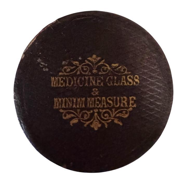 A Victorian 19th century leather cased medicine glass by Gilbertson & Son, London.