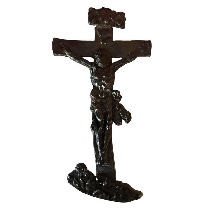 An early 18th century cast lead crucifix with memento mori symbols, circa 1700.