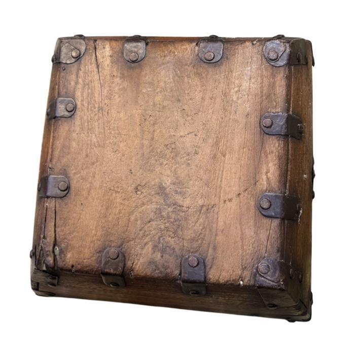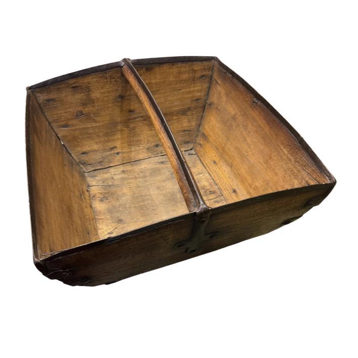 An early 19th century estate made box wood trug with iron bindings, circa 1820