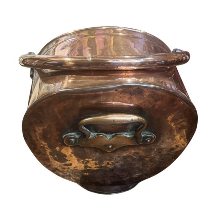 Copper coal scuttles are traditional containers once used to store and carry coal for fireplaces and stoves. Made from durable copper, often with brass or iron handles, they combined functionality with decorative appeal. Their wide tops allowed easy scooping of coal, while angled spouts made pouring clean and efficient.