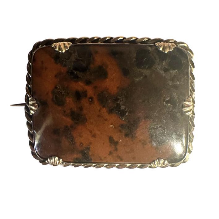 An early Victorian Grand Tour agate plaque brooch in a silver and gold frame, circa 1840.