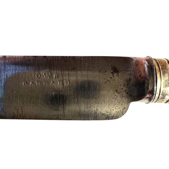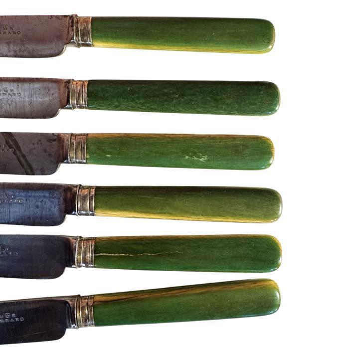 A good set of six English steel early Victorian green bone handled knives by Garrard circa 1840