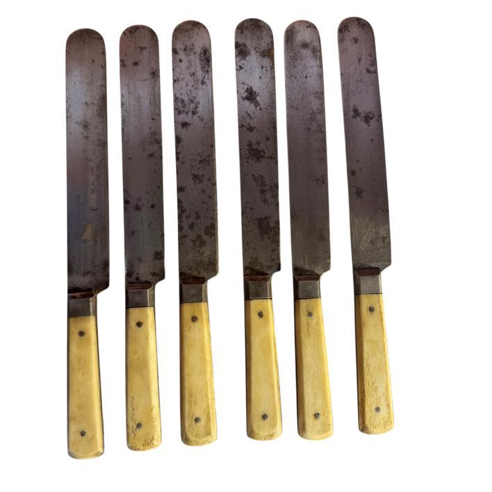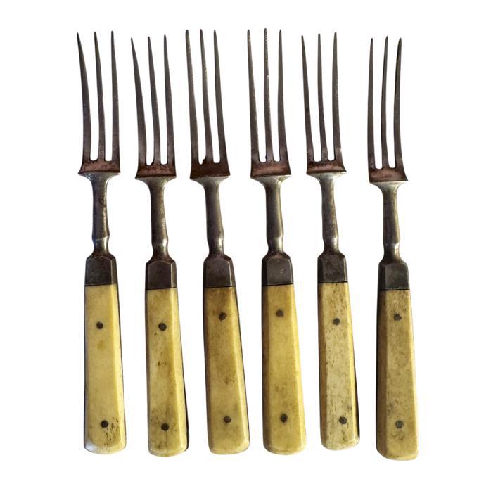 An early 18th century set of six bone handled steel knives and forks by John McCory & Sons of Sheffield circa 1830.