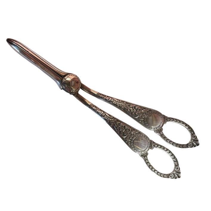 A pair of Old Sheffield Plate ornate engraved grape scissors circa 1820