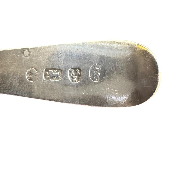 These spoons have all the expected marks - sovereigns head, lion passsant, Newcastle stamp - but are missing the date letter. This is often seen on smaller pieces and appears to be quite common on Dorothy Langland's work.